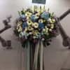 花材內容 : 藍色進口綉球花,藍白色玫瑰,(進口噴染)牡丹菊花等花材